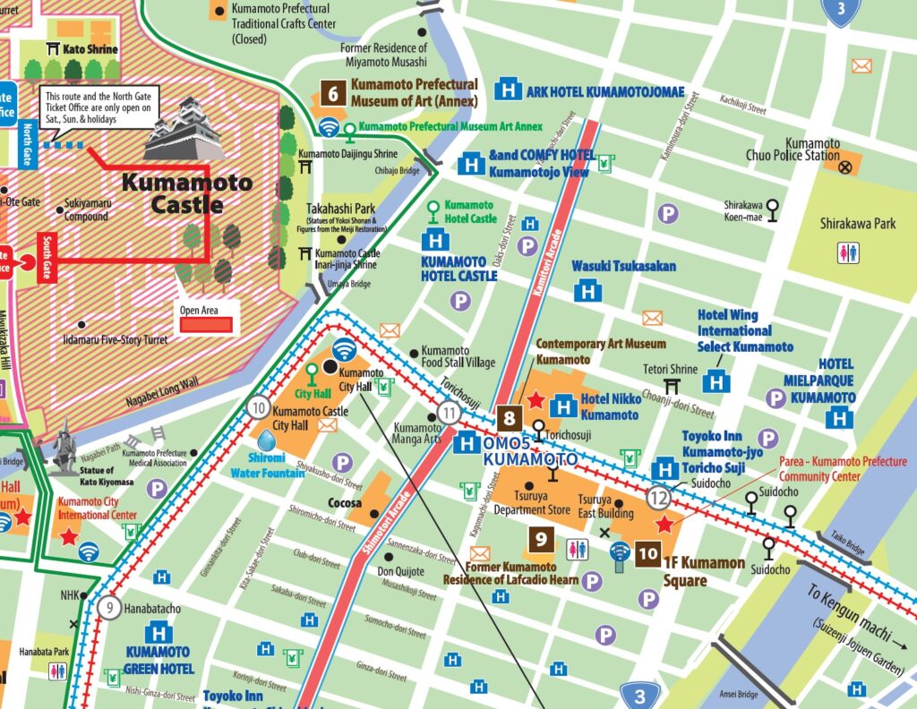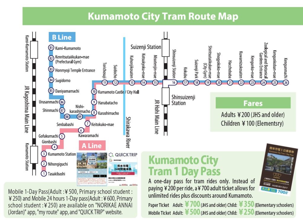 The nearest stop to the venue is Suidocho (Stop No. 12) on the Kumamoto City Tram.